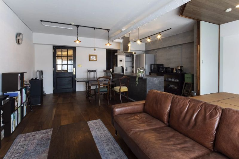 渋谷駅の近くでありながらも喧噪から少し離れた閑静な住宅街で、ダークウッド×ブラック×ホワイトを基調としたスタイリッシュなお部屋が完成した事例です。