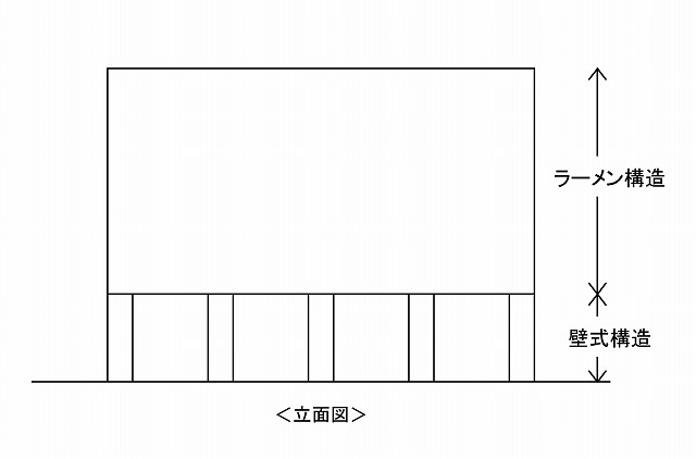 ①ラーメン構造と壁式構造の上下混用構造となっていないこと。
