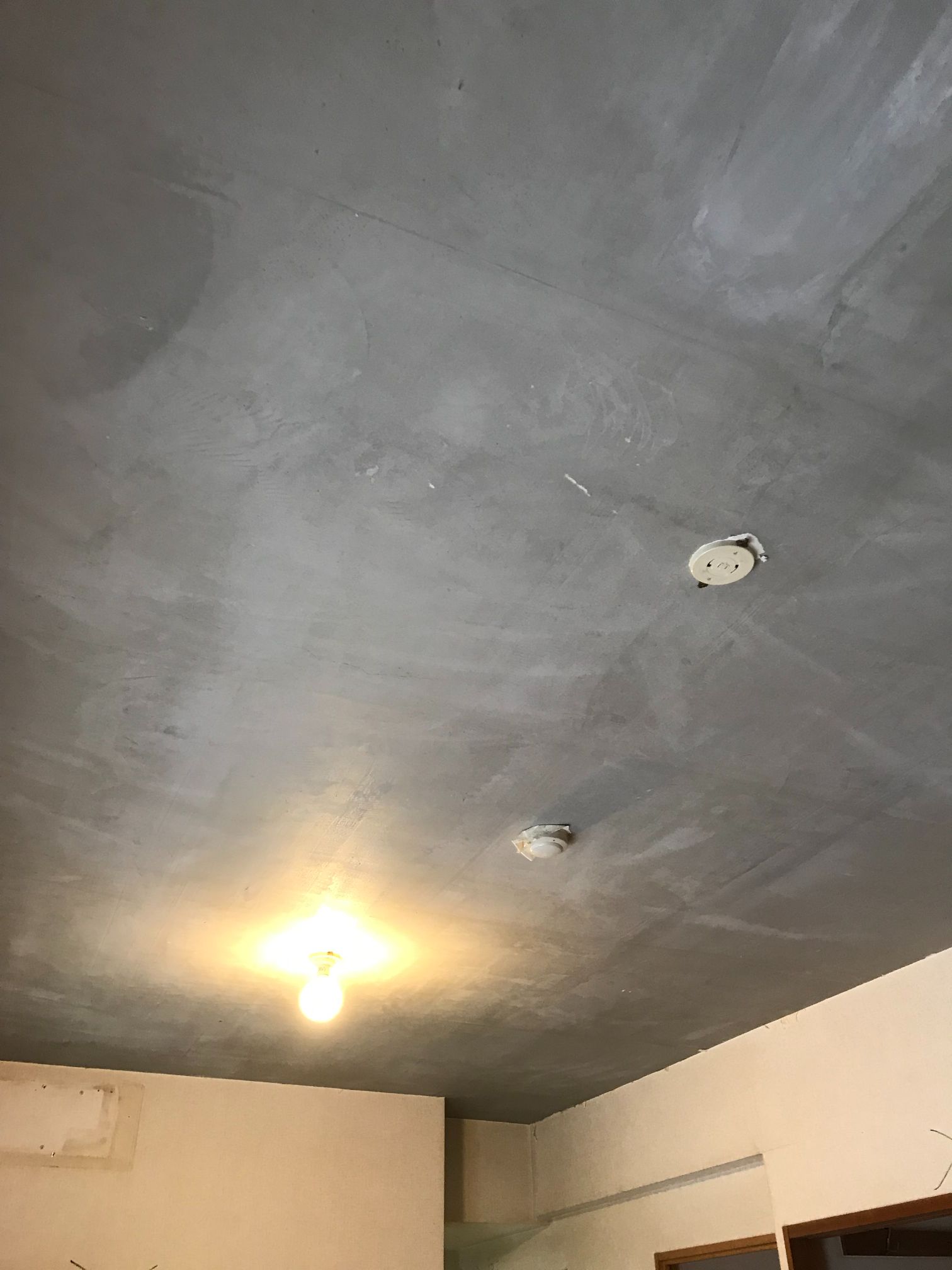 直天井では仕上げ材をコンクリートスラブに直接はりつけているため、接着剤がうまくはがれない、クロスがうまくはがれない、といったケースがよくあります。既存の状態次第で必ずしもキレイな躯体表しの天井になるとは限らない、という点は注意が必要です。