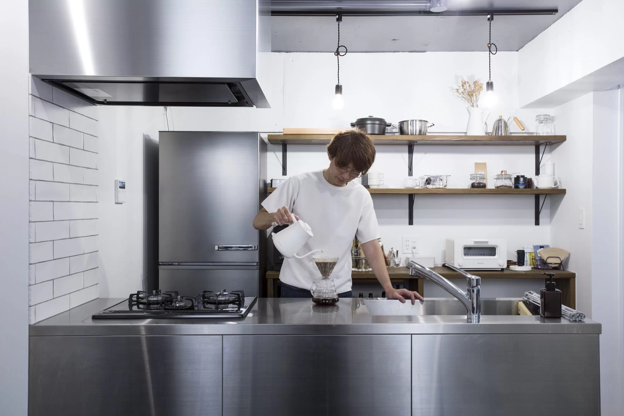 リノベーションの打ち合わせの中で思わず一目ぼれしたステンレスキッチン。自由に暮らせる自分の城をつくった中で、「料理することが増えた」のは思わぬ収穫でした。