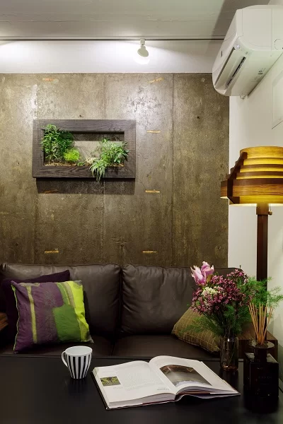 グリーンなどをかけたり、アクセサリーを変えたりすることで無機質な壁がガラっと変わります。
