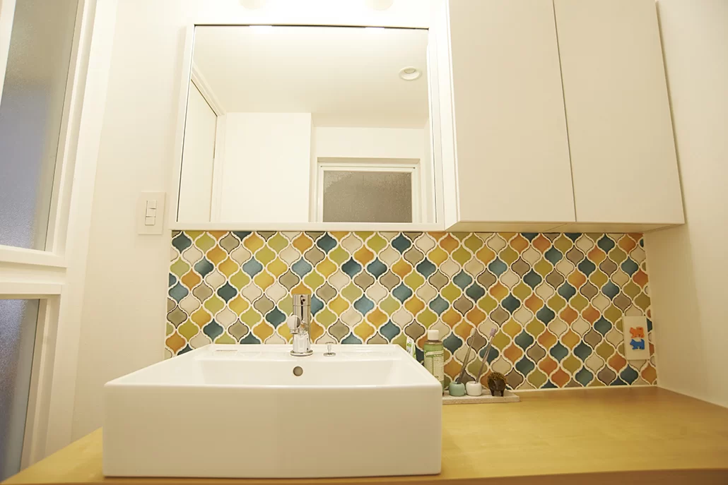 モザイクタイルは洗面やキッチンなどの水廻りのアクセントに使うとインテリアがぐっと華やかになります。