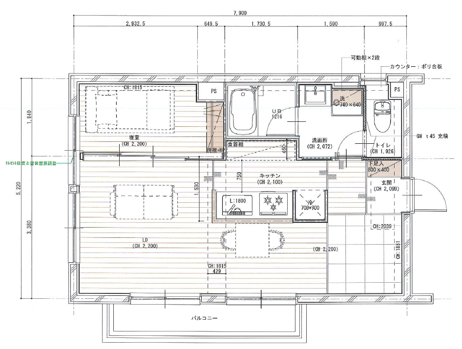 >〈プランC〉キッチンを思い切り奥に移動したプラン
