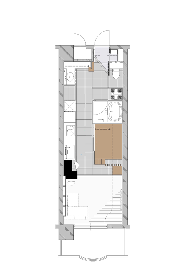 ステップフロアでコンパクト空間に立体感をつくる