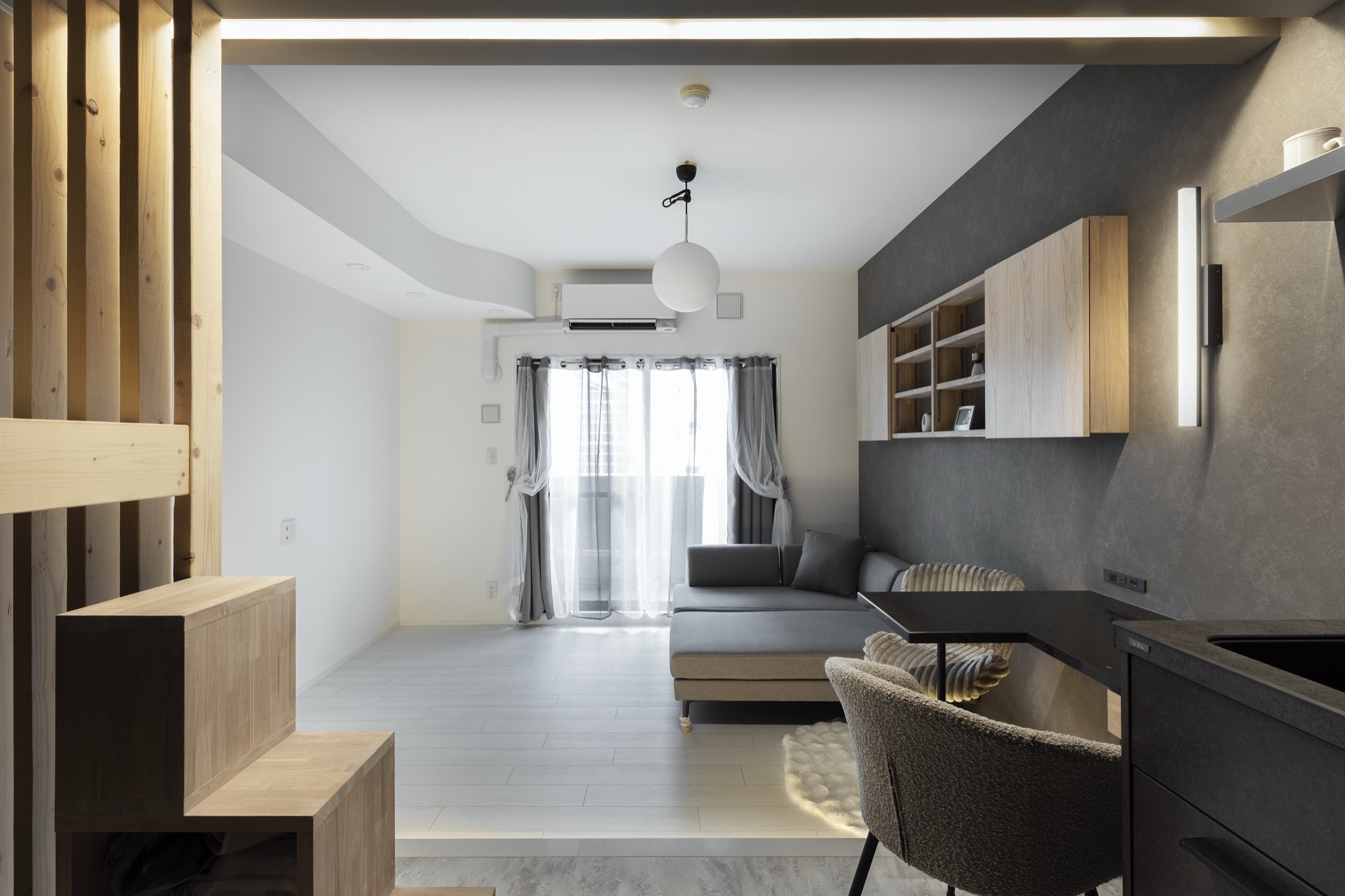 ステップフロアでコンパクト空間に立体感をつくる