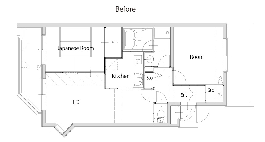 最初のご要望通り、内装をすべて取っ払い、給排水管も新規でお取替え。安心安全に、そしてスペースを有意義に使った住まいが完成しました。