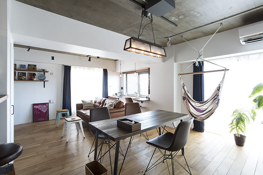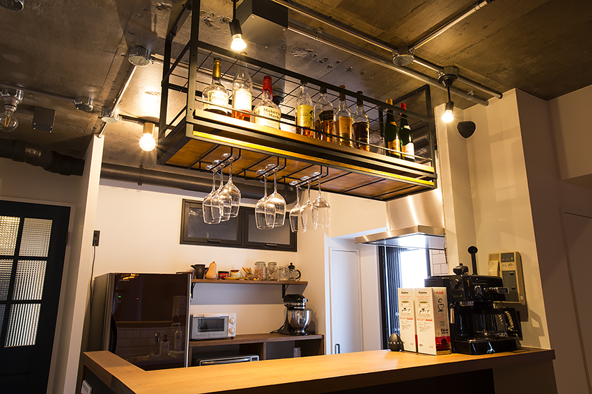 いざ物件が決まると「リノベといえばこれやろ」と奥様が真っ先にイメージしたのが「ワイングラスがかけられるラック」と「ハンモック」。
