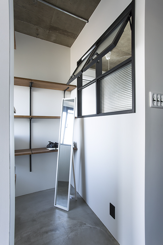洗面所とつながっていて、寝室から窓の外に向けて風が通るようになっています。