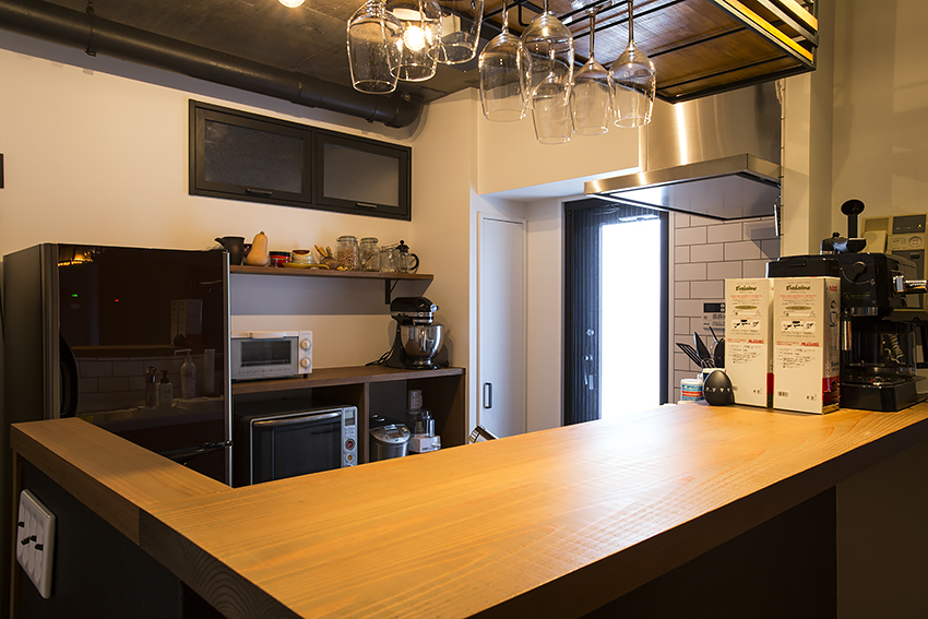 「お酒がおいしく飲める家」をしっかり演出するのはキッチンのカウンター。