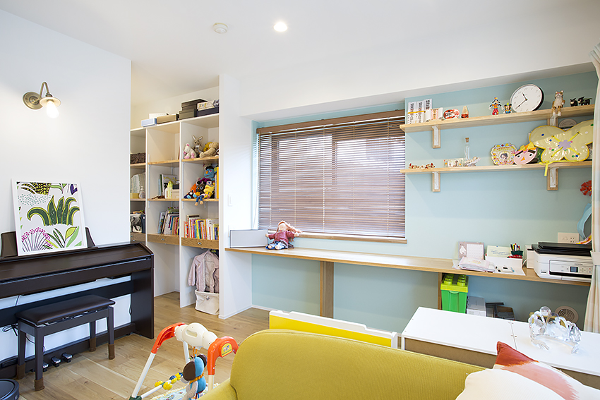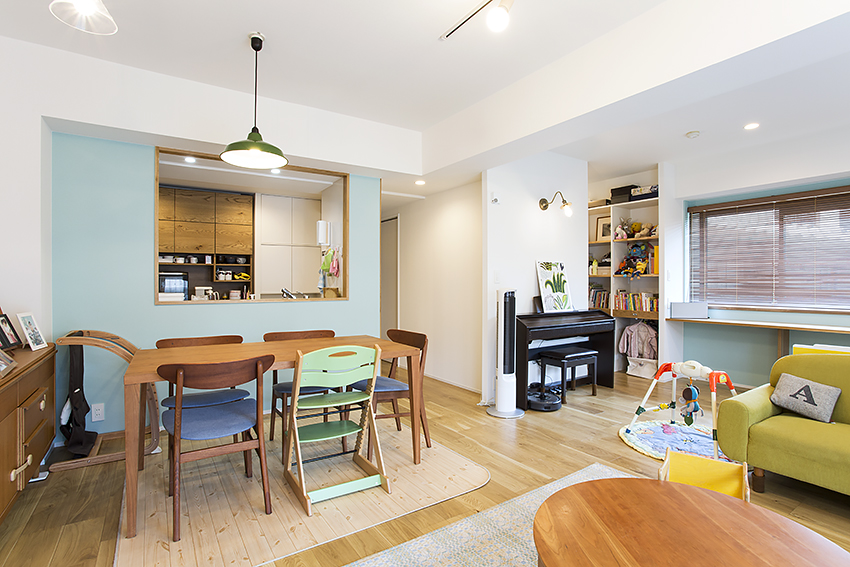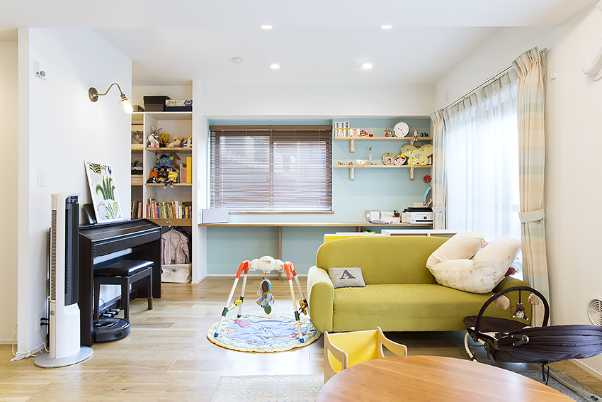 そうやって広さを確保したリビングには、お子さんの遊び場やピアノの置き場所も設けました。