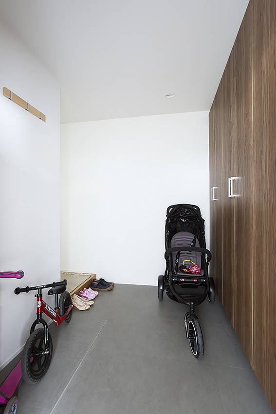 お子さんのお友だちが遊びに来ても、ベビーカー2台くらいなら楽々入れるので、便利だそう。