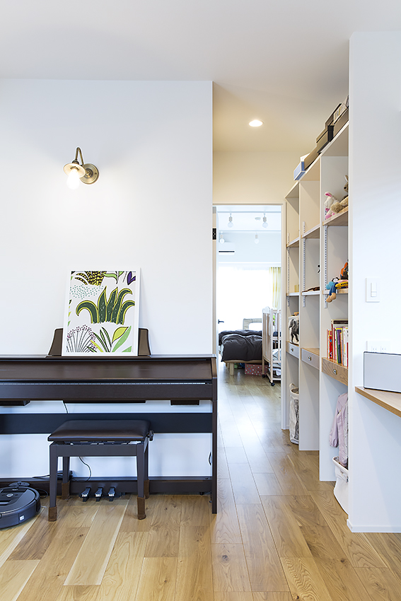 そうやって広さを確保したリビングには、お子さんの遊び場やピアノの置き場所も設けました。
