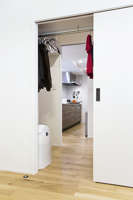 ウォークインクローゼットには双方向に扉があることで、廊下(洗面所やキッチン側)から寝室へも一直線に移動することができます。