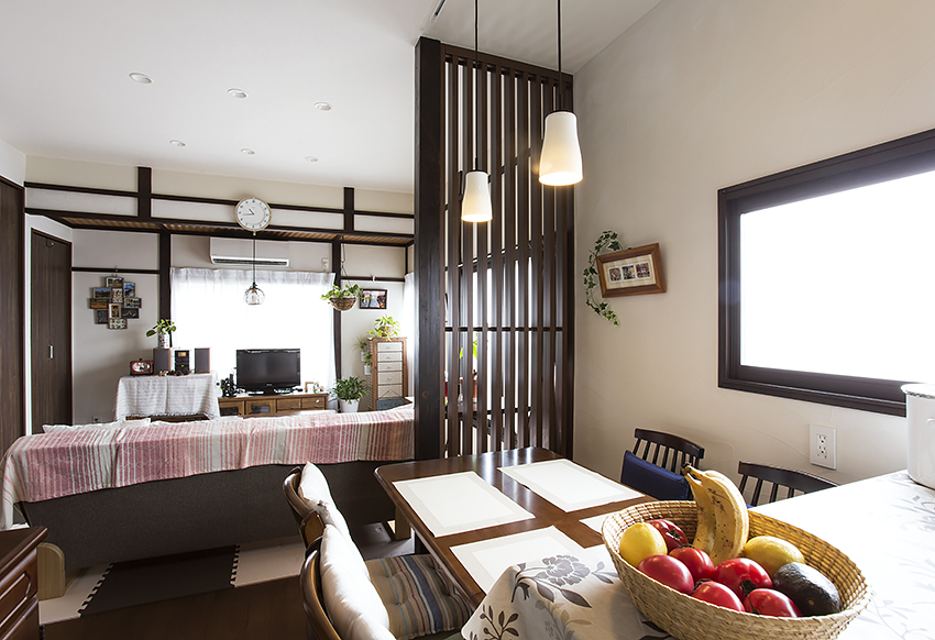 海外の内装に憧れがあったということで、和テイストをベースに生かしつつ海外の内装の要素もところどころで取り込んでいきました。