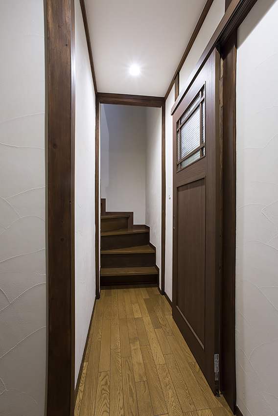 もともとは玄関入ってすぐのところに壁があったせいで、階段が暗くて細長い印象でした。