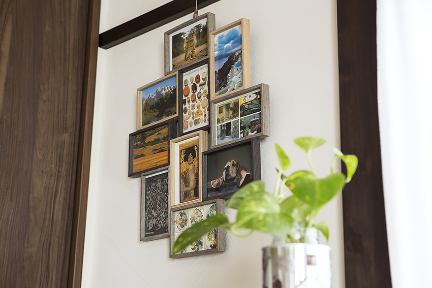 壁にはDIYで見せ場を作って、写真やグリーンのインテリア。