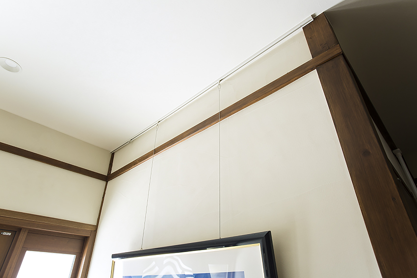 初めから絵を飾ることを前提としていたので、重いものも支えられるピクチャーレールを取り付けました。