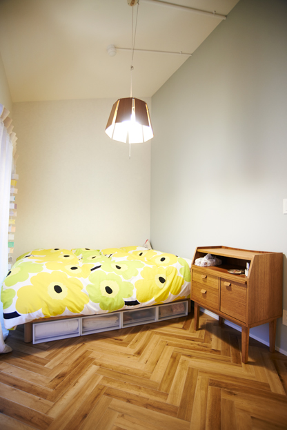 洋室や寝室の床には無垢風の塩ビタイルを用いました。